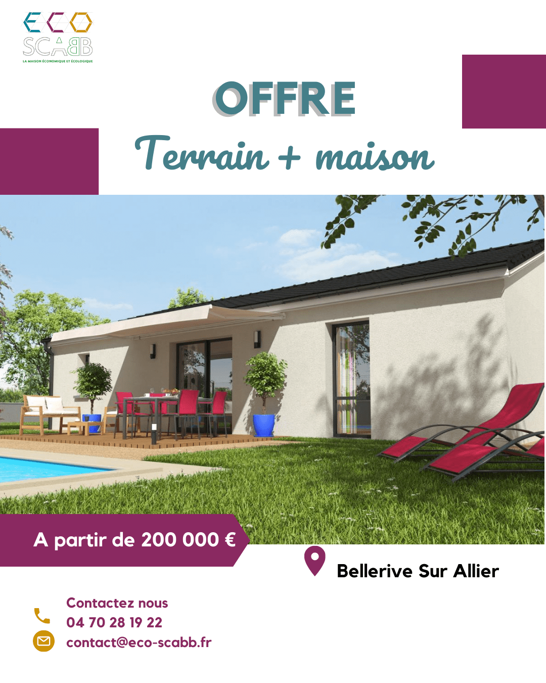 Nous vous proposons une offre complète terrain + maison à partir de 200 000 €.