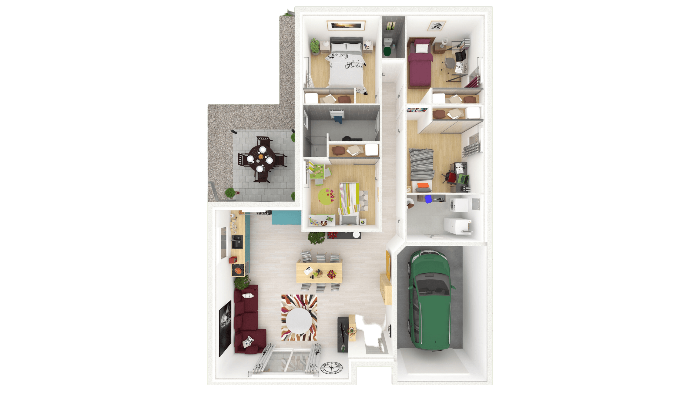 L’accès à la maison pourra également se faire par le garage communiquant avec un cellier donnant au centre de la maison.
